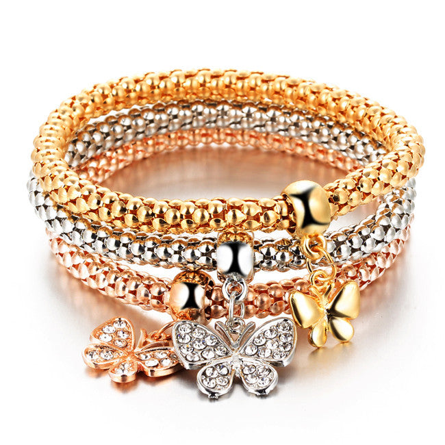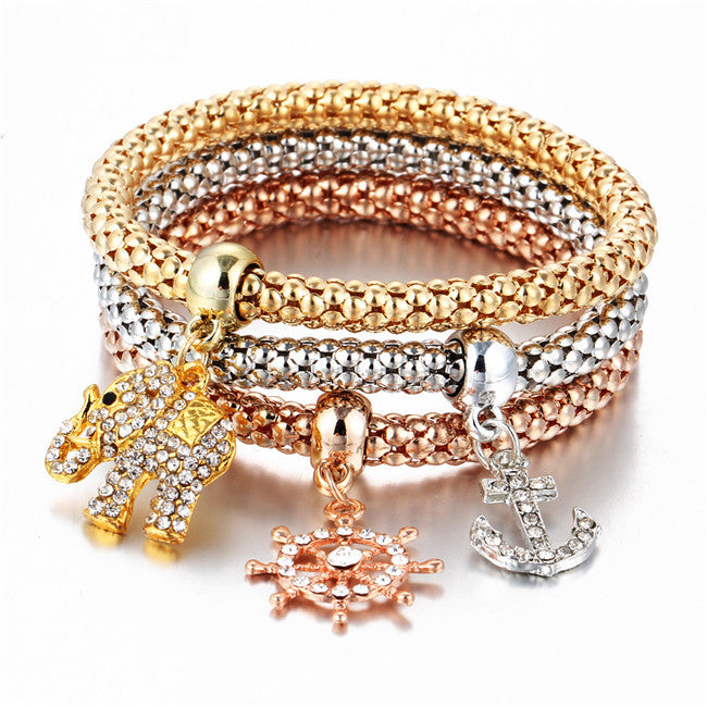 3Pcs/set Crystal Music Bracelet Rhinestone Charm Skull Gold Color Heart Party Jewellery Bracelets&Bangles For Women 2016 Love